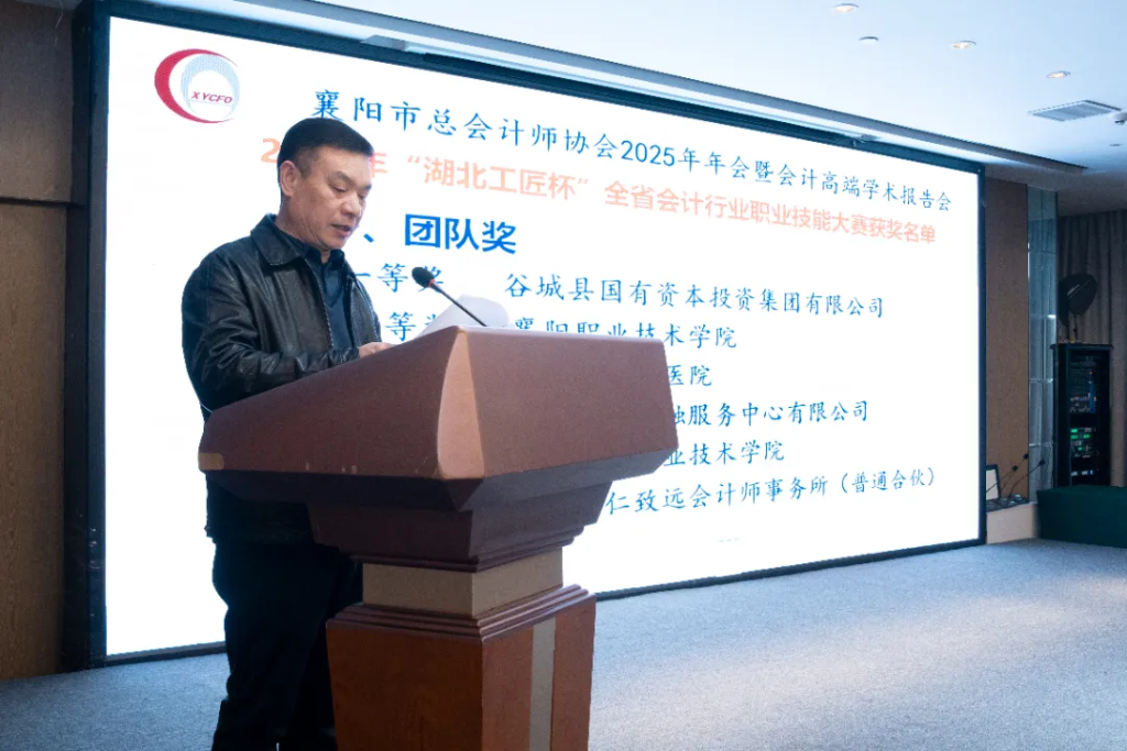 协会副会长、中榈工程科技有限公司财务总监康隶宣读了优秀论文获奖名单和2025年“湖北工匠杯”全省会计行业职业技能大赛获奖名单。