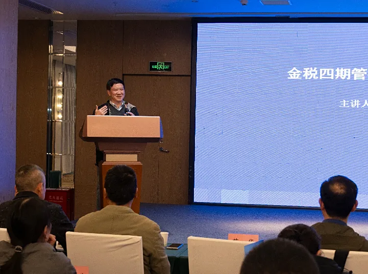 第二场学术报告由中南财经政法大学财政税务学院教授、博士生导师艾华教授作《金税四期管控下企业税收风险防范》专题报告。艾教授以金税四期管控的基本概况、容易出现的税收风险以及金税四期管控下如何防范税收风险这三个话题,着重分享了纳税人如何防范风险,通过成语“孰能生巧”,生动解析了防范风险的基本方法,通过报表解析,告知我们要将税务合规作为企业生存和发展的基石,慢慢实现从“税管”到“自控”的转变。