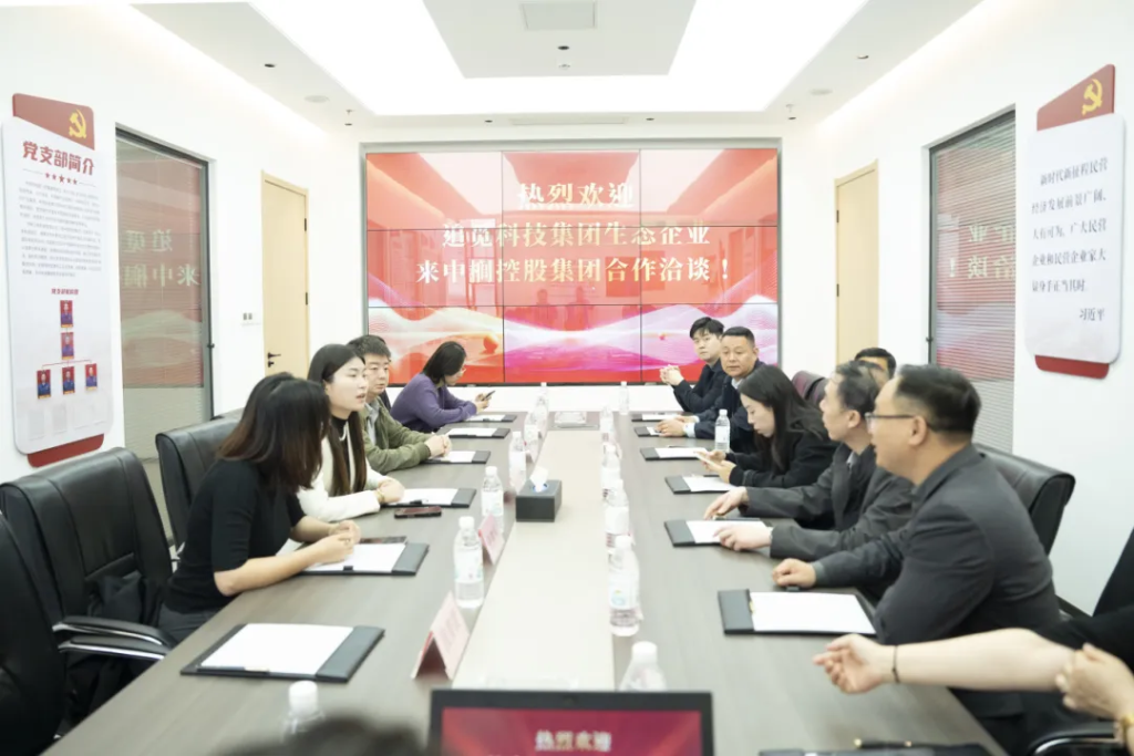 在公司会议室,双方举行合作洽谈交流会,围绕核心业务、产业布局、未来合作展开深度研讨。